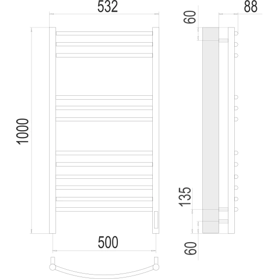 Полотенцесушитель водяной Grota Calma 4607118218615 1800x530, хром