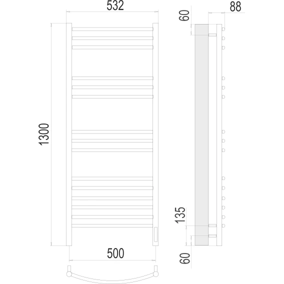 Полотенцесушитель электрический 1270x432 ТЭН левый Secado Агата 5 4603777450717