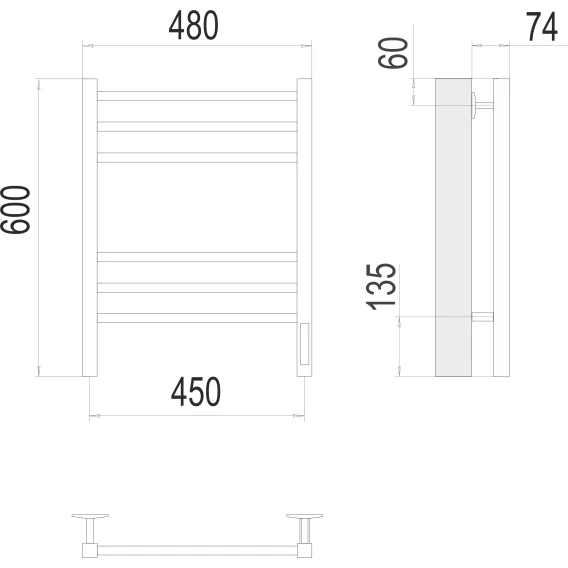 Полотенцесушитель электрический Terminus Сицилия П6 4670078543004 600x480, ТЭН правый, черный муар