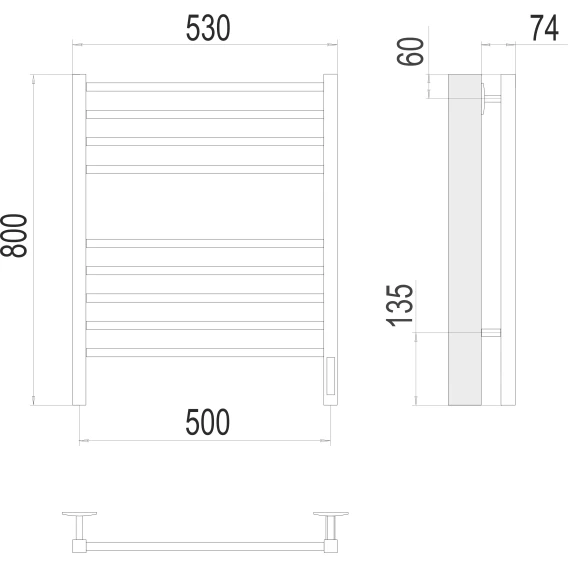 Полотенцесушитель электрический Terminus Сицилия П8 4670078527639 800x530, ТЭН правый, белый матовый