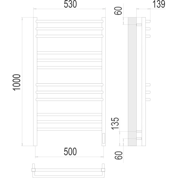 Полотенцесушитель электрический Terminus Соренто П12 4670078527196 1000x530, ТЭН правый, хром