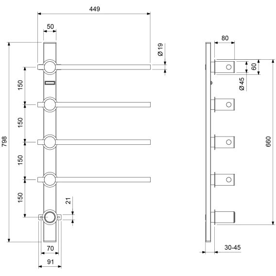 Встраиваемый электрический полотенцесушитель Timo Saona 040 предназначен для сушки текстильных изделий. Основные преимущества встроенного полотенцесушителя: элегантный внешний вид, все коммуникации и крепления спрятаны в стену, с внешней стороны видны только нагревательные элементы и блок контроля температуры. Сенсорный дисплей прост и удобен в использовании, нажмите и удерживайте кнопку для включения/выключения в течении 3 секунд, на дисплее автоматически отобразится температура и таймер. Диапозон регулировки температуры от 40 до 70°С, при каждом нажатии кнопки температура повышается на 5°С. Диапозон регулировки таймера: от 1 до 24 часов. Каждое нажатие кнопки увеличивает время работы на 1 час. Чтобы обеспечить длительную и безопасную работу электрического полотенцесушителя, внимательно изучите инструкцию и придерживайтесь рекомендаций по установке и эксплуатации. Сложностей монтажа не возникает при установке полотенцесушителя опытным электриком.