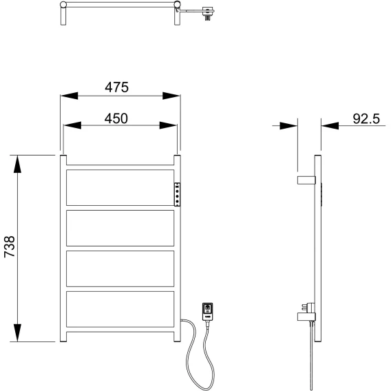 • Комплектация: Полотенцесушитель / Монтажный комплект / Сетевой кабель с вилкой