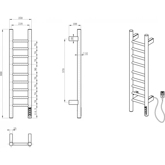 • Комплектация: Полотенцесушитель / Монтажный комплект / Сетевой кабель с вилкой