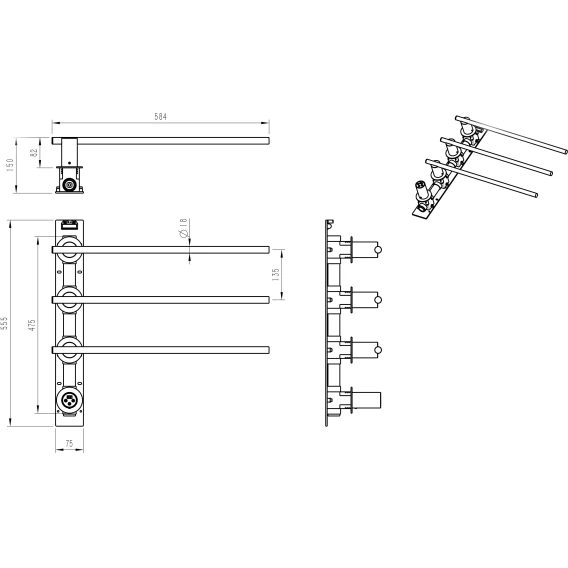 • Комплектация: Полотенцесушитель / Монтажный комплект