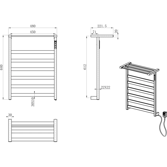• Комплектация: Полотенцесушитель / Монтажный комплект / Сетевой кабель с вилкой
