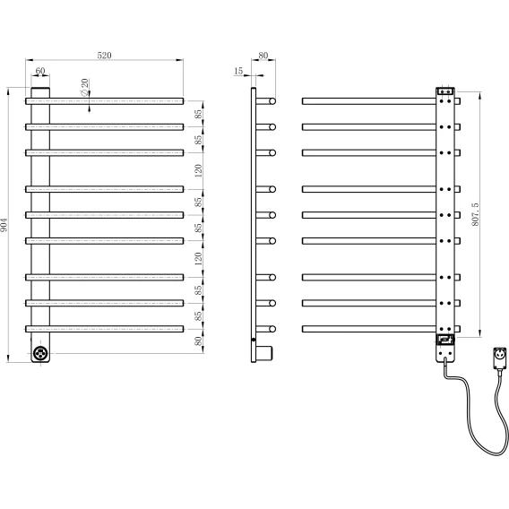 • Комплектация: Полотенцесушитель / Монтажный комплект