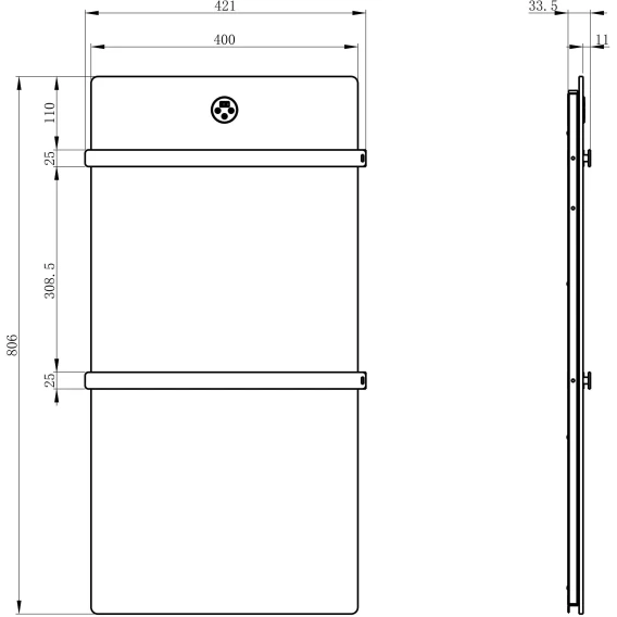 • Комплектация: Полотенцесушитель / Монтажный комплект / Сетевой кабель с вилкой
