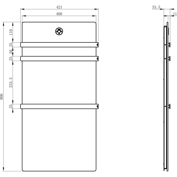 • Комплектация: Полотенцесушитель / Монтажный комплект / Сетевой кабель с вилкой