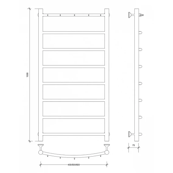 Полотенцесушитель водяной 1000x632 Secado Милан 1К 4603777444679