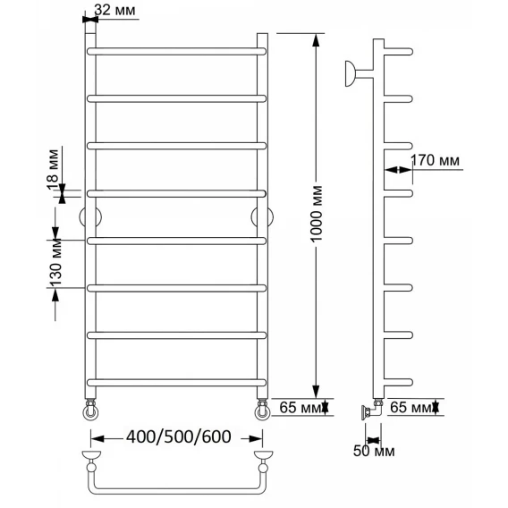 Полотенцесушитель водяной 1065x532 Secado Мерида 1 4603777476854