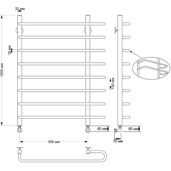 Полотенцесушитель водяной 1065x600 Secado Венеция 2 4603777476724