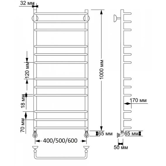 Полотенцесушитель водяной 1000x630 Secado Модена 2 4603777480103