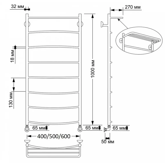 Полотенцесушитель водяной 1000x532 Secado Риволи 4603777448165