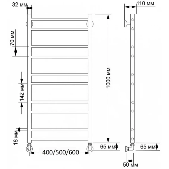 Полотенцесушитель водяной 1065x632 Secado Триада 2 4603777468323