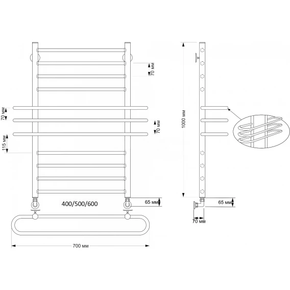 Полотенцесушитель водяной 600x432 Secado Триест 4673739246474