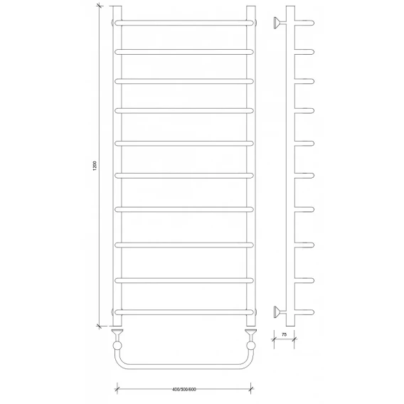 Полотенцесушитель водяной 1200x432 Secado Мерида 1 4603777445249