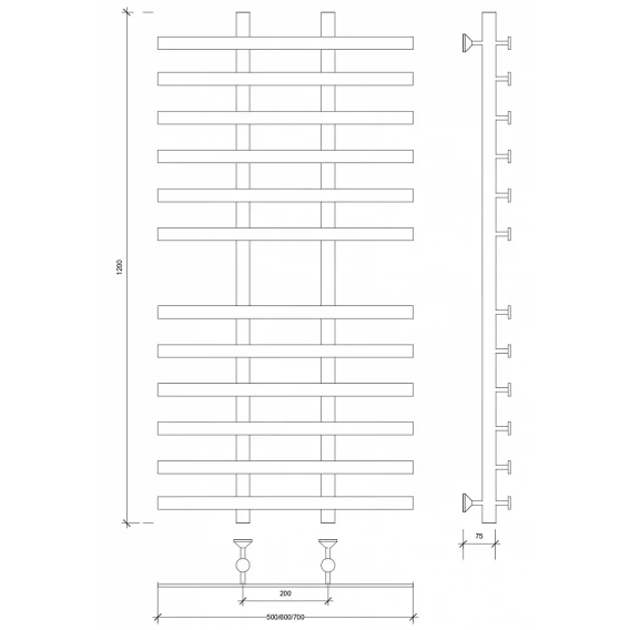 Полотенцесушитель водяной 1200x500 Secado Понтида 4 4603759406725