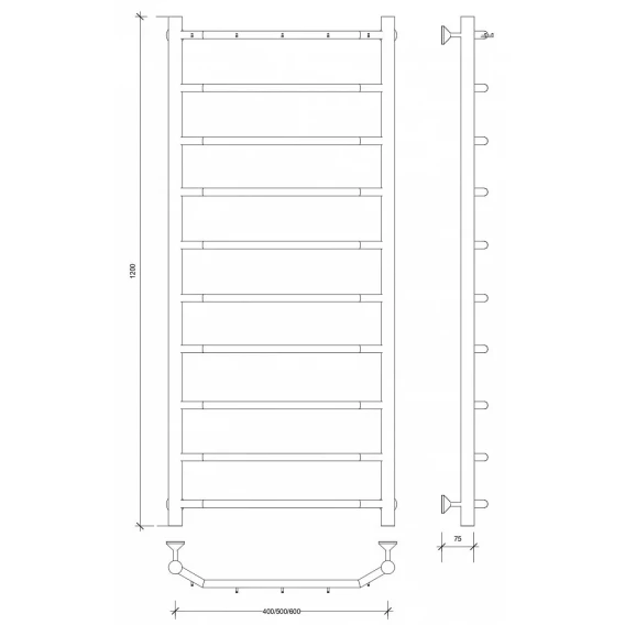 Полотенцесушитель водяной 1200x532 Secado Агата 1К 4603759405162