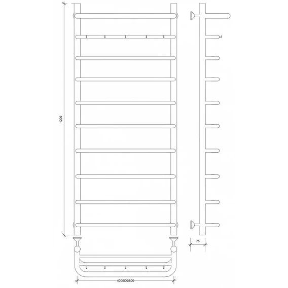 Полотенцесушитель водяной 1200x532 Secado Мерида 1КСП 4603759406008