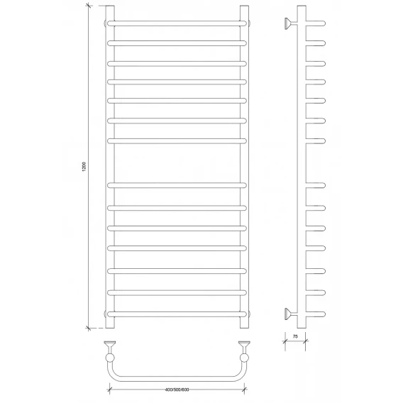 Полотенцесушитель водяной 1200x532 Secado Мерида 3 4603759406121
