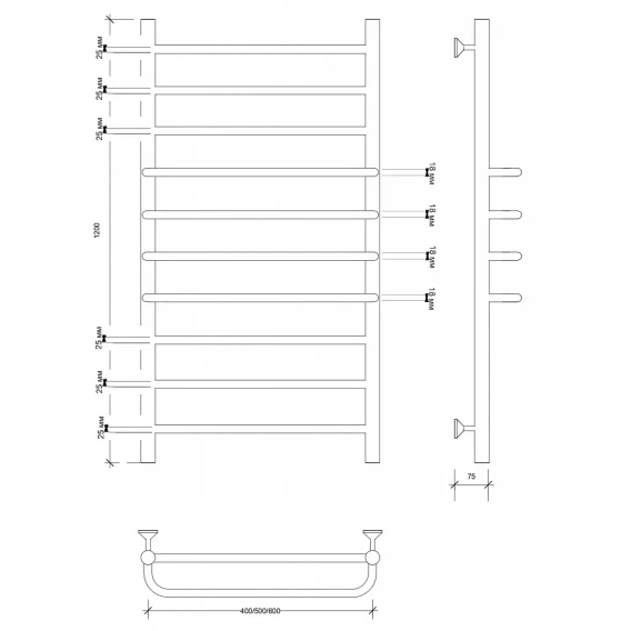 Полотенцесушитель водяной 1200x532 Secado Триест 4673739246573