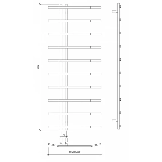 Полотенцесушитель водяной 1200x532 Secado Валенсия 1СП 4603759405483