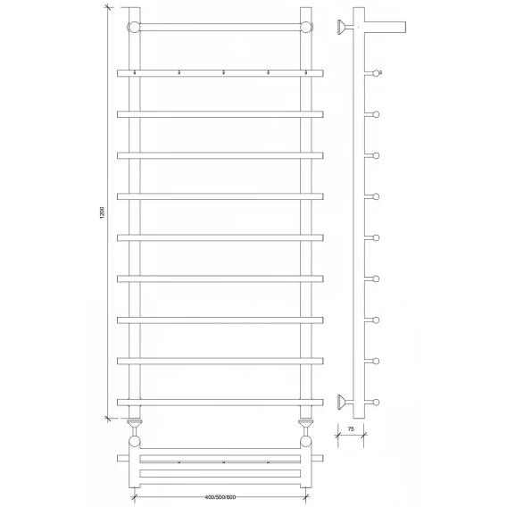 Полотенцесушитель водяной 1200x600 Secado Турин 1КСП 4603759407302