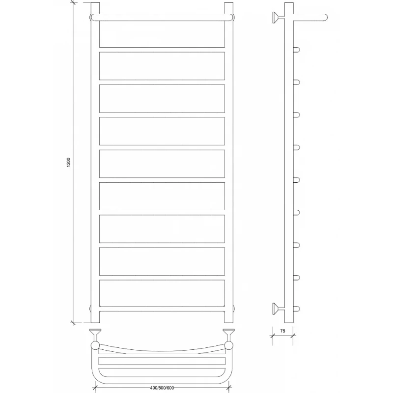 Полотенцесушитель водяной 1200x632 Secado Милан 1СП 4603777444778
