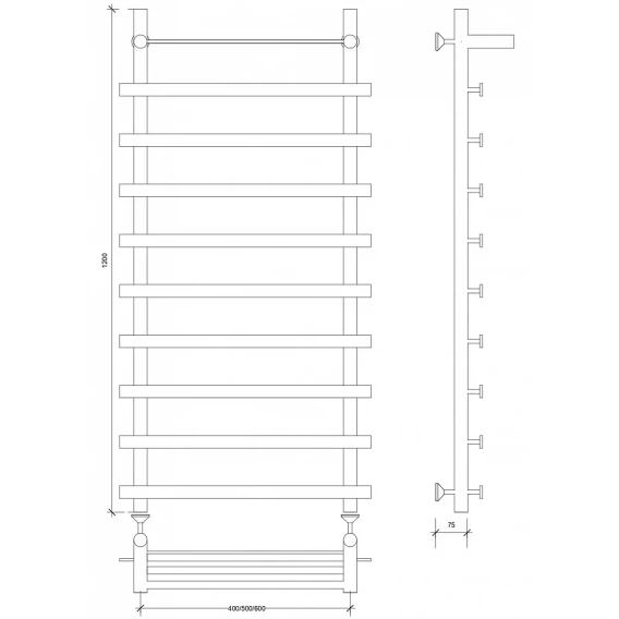 Полотенцесушитель водяной 1200x530 Secado Модена 3 4603777441548