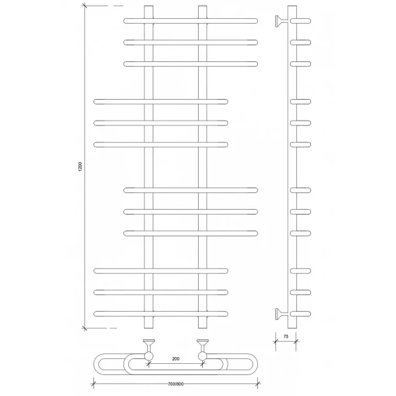 Полотенцесушитель водяной 1200x700 Secado Венеция 6 4603777446697
