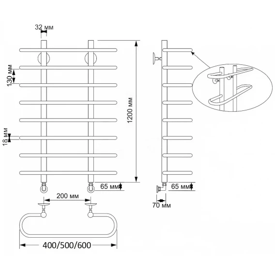 Полотенцесушитель водяной 1265x600 Secado Венеция 4603777470258