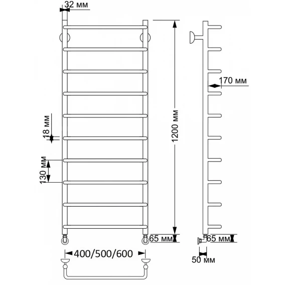 Полотенцесушитель водяной 1265x632 Secado Мерида 1 4603777459819