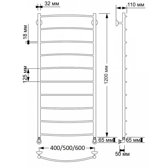 Полотенцесушитель водяной 1265x632 Secado Милан 1 4603777459376
