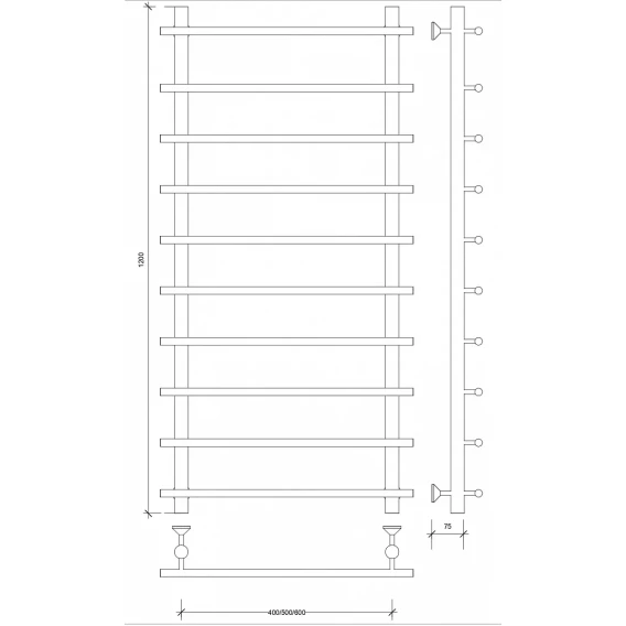 Полотенцесушитель водяной 1200x432 Secado Милан 1КСП 4603777444846