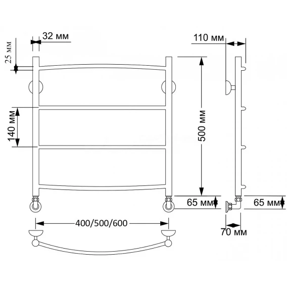 Полотенцесушитель электрический 870x432 ТЭН правый Secado Триада 5 4603777449520