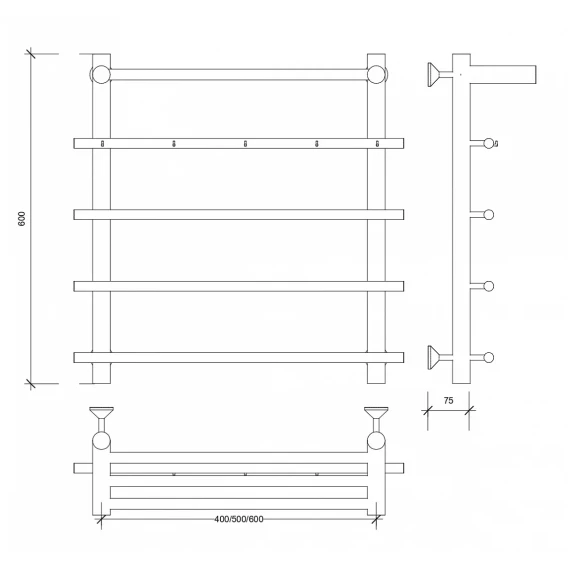 Полотенцесушитель водяной 600x500 Secado Турин 1КСП 4603777446871