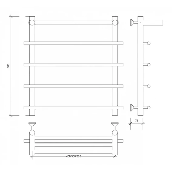 Полотенцесушитель водяной 600x600 Secado Турин 1СП 4603759407241