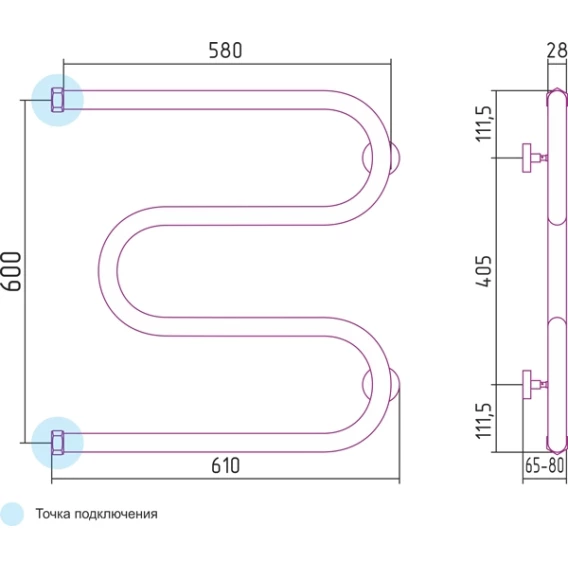 Полотенцесушитель подключается к системе горячего водоснабженияили центрального отопления последовательно к основной магистрали