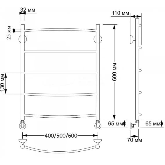 Полотенцесушитель водяной Terminus Фокстрот-Лиана 4620768880995 532x700, хром