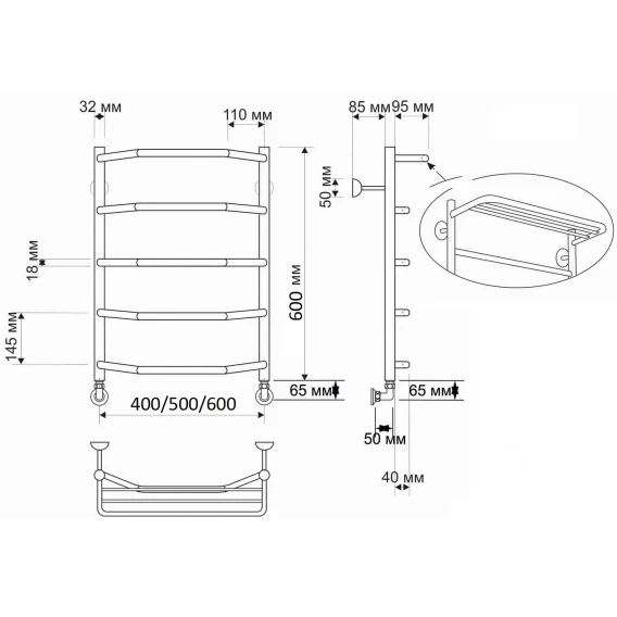 Крепление, Металлическая розетка, Полочка, Уголок переходной