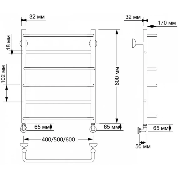 Полотенцесушитель водяной 600x532 Secado Мерида 2СП 4603759406060
