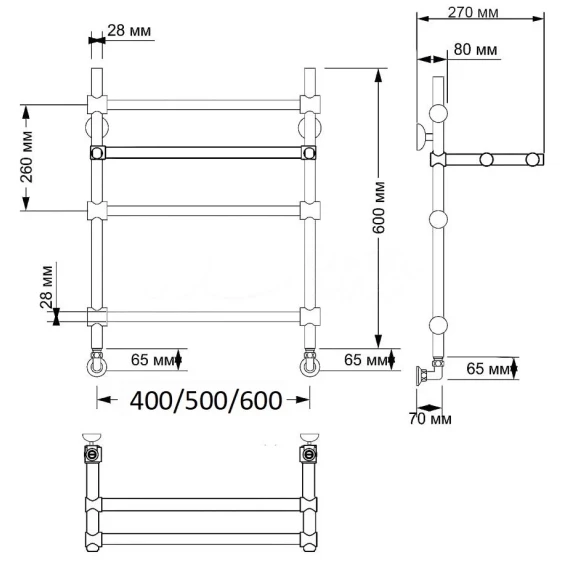 Полотенцесушитель водяной 665x632 Secado Флоренция 3 4603777460396