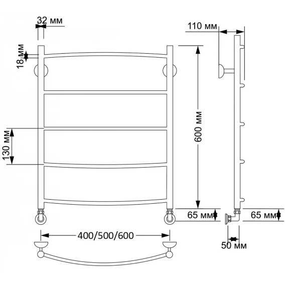 Полотенцесушитель водяной 600x432 Secado Мерида 1КСП 4603777445423