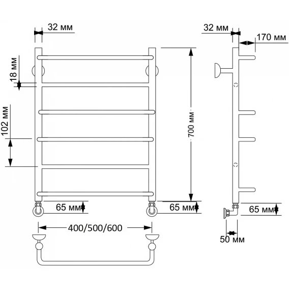Полотенцесушитель водяной 600x432 Secado Риволи СП 4603777448219