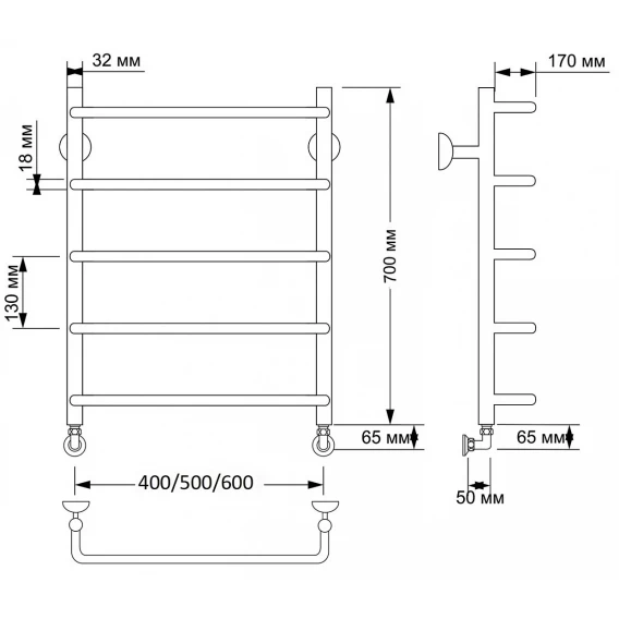 Полотенцесушитель водяной 600x632 Secado Мерида 5 4603777445836