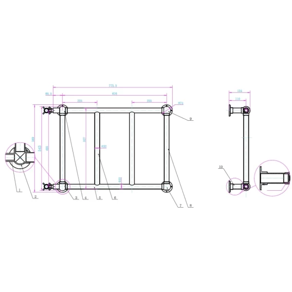 Полотенцесушитель водяной 773,5x569 Boheme Palazzo 711