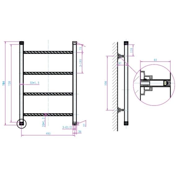 Полотенцесушитель водяной 784x495 Boheme Oro 706