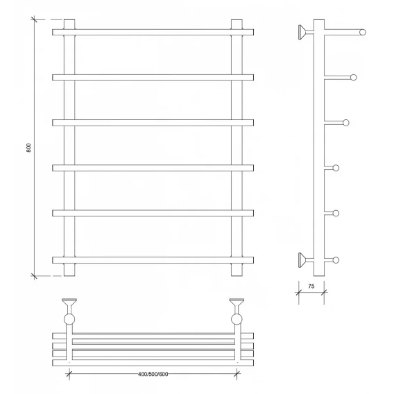 Полотенцесушитель водяной 800x600 Secado Турин 6 4603759404240