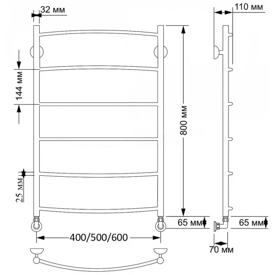 Полотенцесушитель водяной 865x532 Secado Милан 1 Плюс 4603777477073